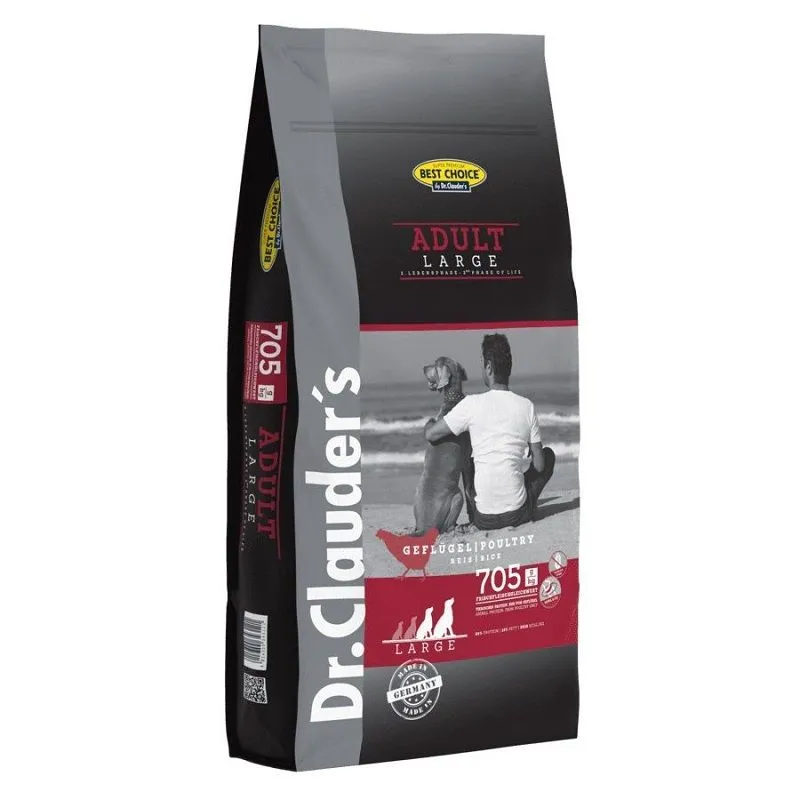 carne disidratata di pollame (22,5%), mais, semola di mais, riso, grasso di pollame, proteine idrolizzate, grani di lino, polpa di barbabietole, idrolizzato di gelatina (2%), cicoria in polvere (1%), lievito di birra (essicato,con 0.05% glucano), uova intere disidratate, cloruro di potassio,, cloruro di sodio, cozze disidratate (0,1%), estratto di yucca disidratata (0,025%)