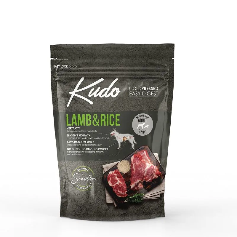 Kudo Lamb & rice Adult Medium Maxi è un alimento completo pressato a freddo per cani. È un pasto che contiene tutti i nutrienti richiesti dai cani adulti di taglia media e grande