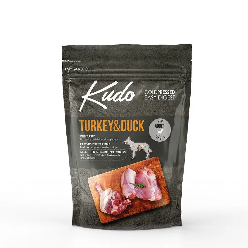 Kudo Turkey & Duck Mini Adult è un alimento pressato a freddo, completo e bilanciato per cani di piccola taglia di età superiore ai 12 mesi.