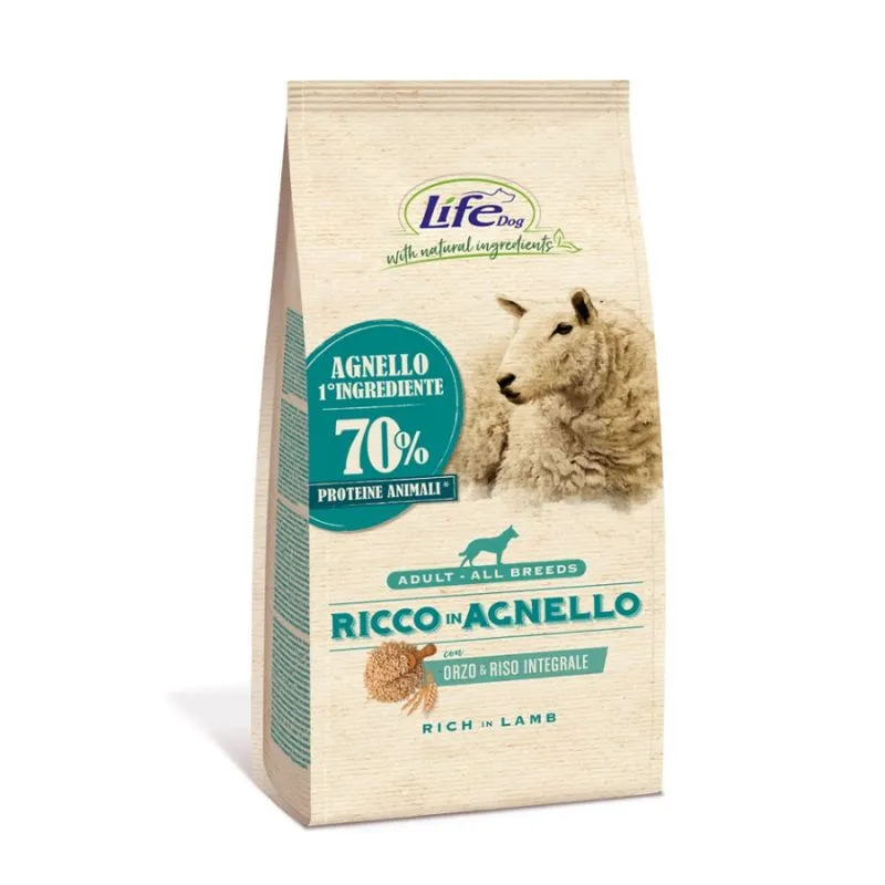 Alimento completo per cani adulti. La formula Ricco in agnello è preparata con un mix di carne disidratata in cui l’agnello è l’ingrediente prevalente, cereali ad alta digeribilità e fibre vegetali. La carne di agnello è estremamente appetitosa, grazie all’aroma pronunciato e al contenuto elevato ma equilibrato di grassi.