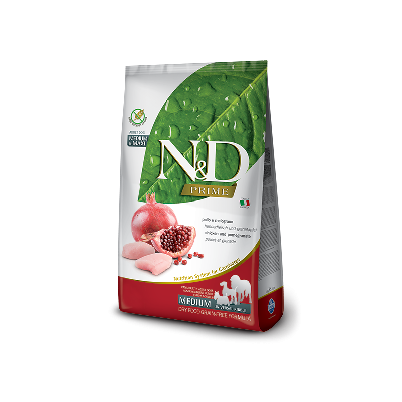 N&D Prime è la linea di alimenti formulata senza cereali, scientificamente studiata per la natura carnivora del tuo cane.
