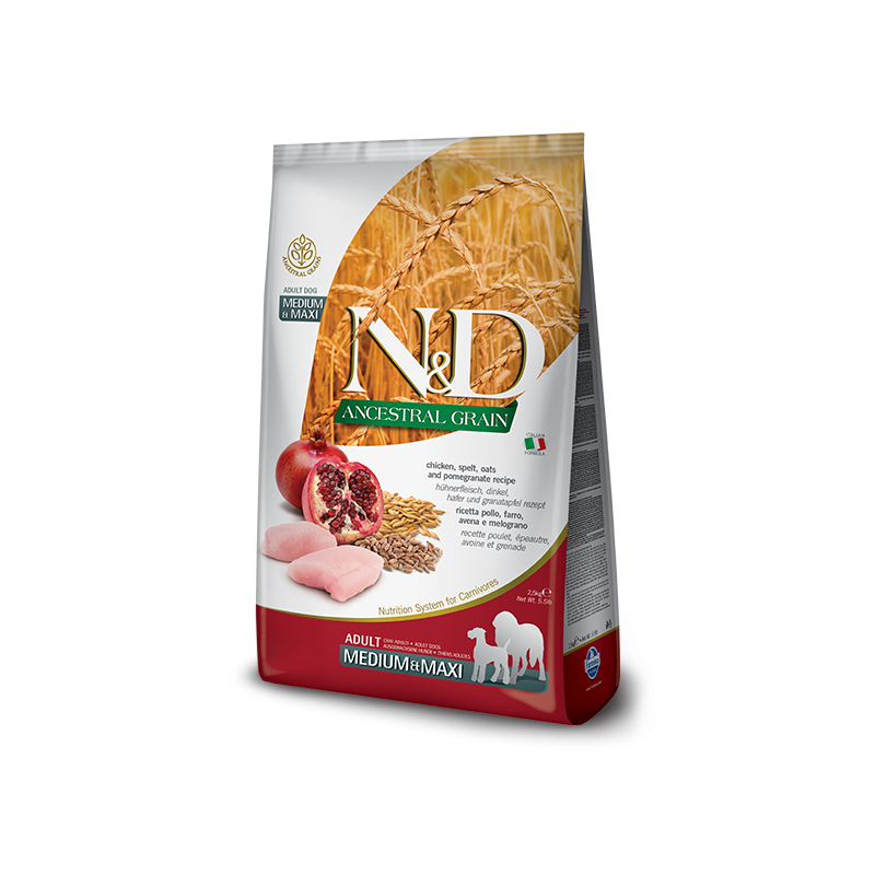 N&D Ancestral è la linea di prodotti Farmina con pochi cereali ancestrali (farro ed avena), scientificamente studiata per la natura carnivora del tuo cane.