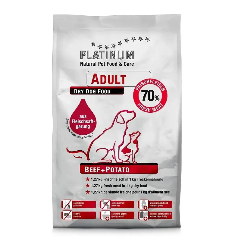 Platinum ADULT BEEF+POTATO contiene solo ingredienti di altissima qualità adatti ad alimentazione umana: